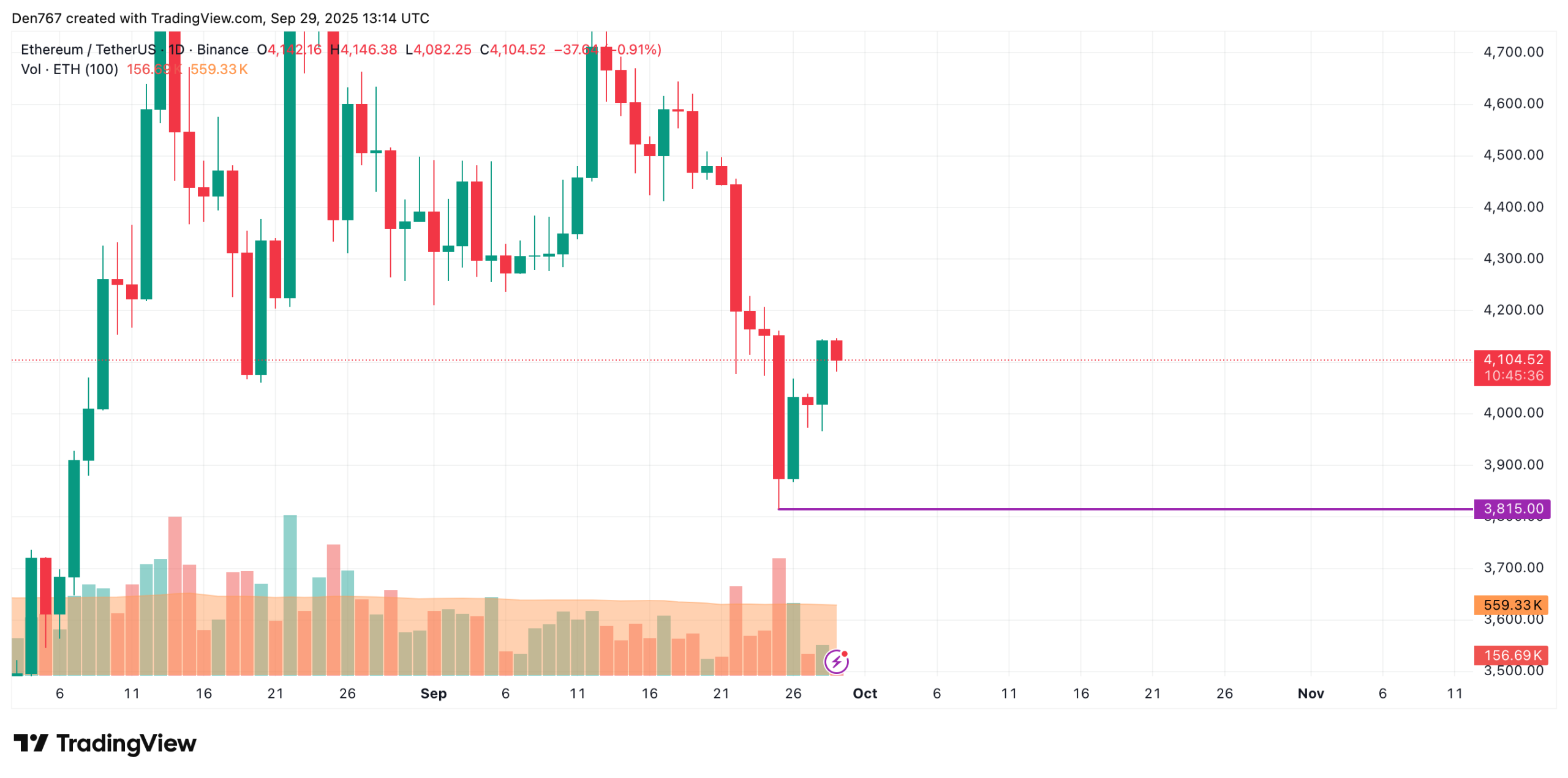 📌 قیمت اتریوم در زمان نگارش این تحلیل: ۴,۱۰۷ دلار.