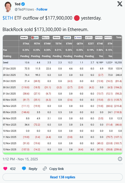 ETF بلکراک بخش بزرگی از موقعیتهای اتریوم خود را در جریان این فروش تحتتأثیر قرار داده است.