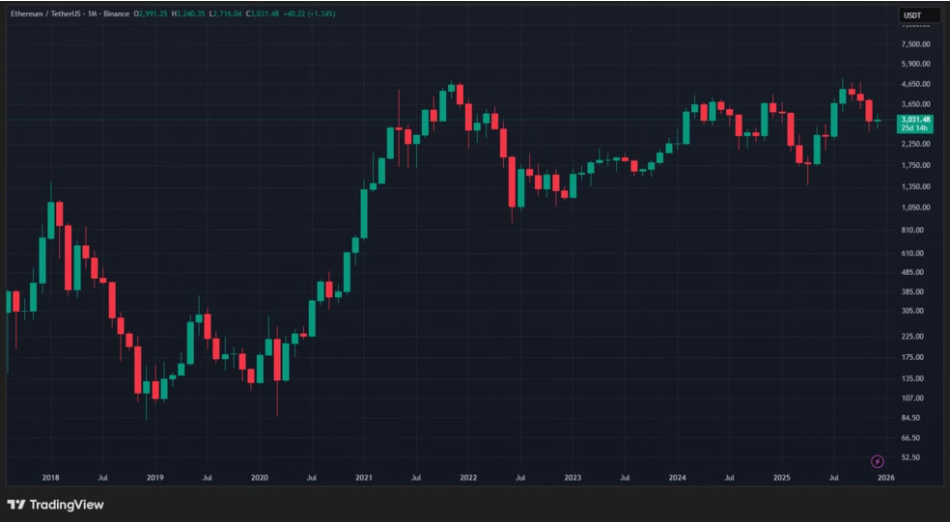 (نمودار ماهانه قیمت اتریوم — طبق دستور بدون تغییر یا حذف اطلاعات درج شد)