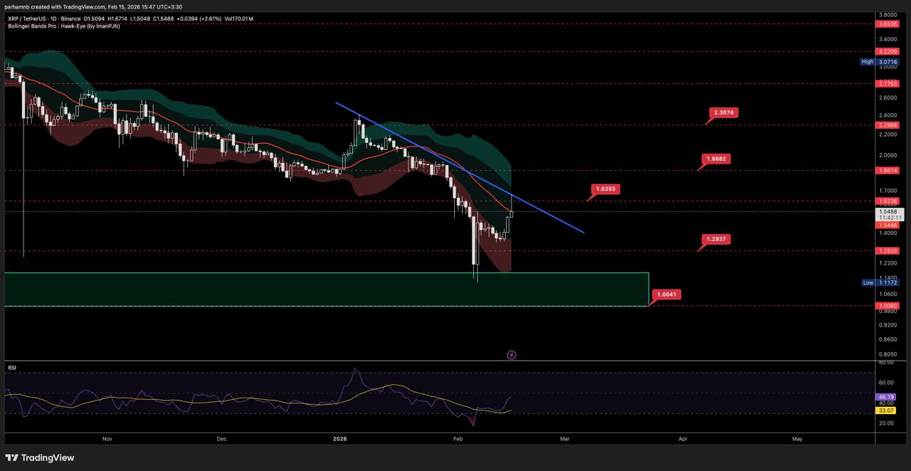 با این حال، برای اینکه بتوان از تغییر فاز بازار صحبت کرد، ریپل باید از مقاومت داینامیک نزولی عبور کند؛ مقاومتی که در حوالی ۱.۶ دلار قرار دارد.