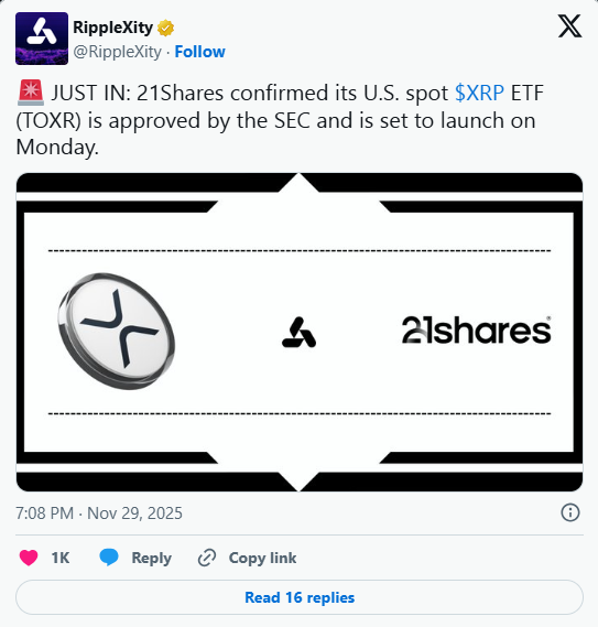 این روند توسط تمرکز تازه مؤسسات بزرگ، سیگنالهای تکنیکال مثبت و تقاضایی که از ETFهای تأییدشده جدید (توسط 21Shares) ایجاد شده، تقویت میشود. این ETFها از روز دوشنبه با نماد TOXR در آمریکا شروع به معامله خواهند کرد.