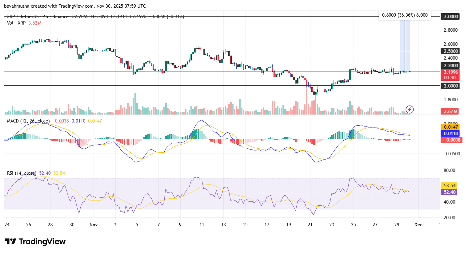 تحلیل ۴ ساعته XRP/USD (بر اساس TradingView):